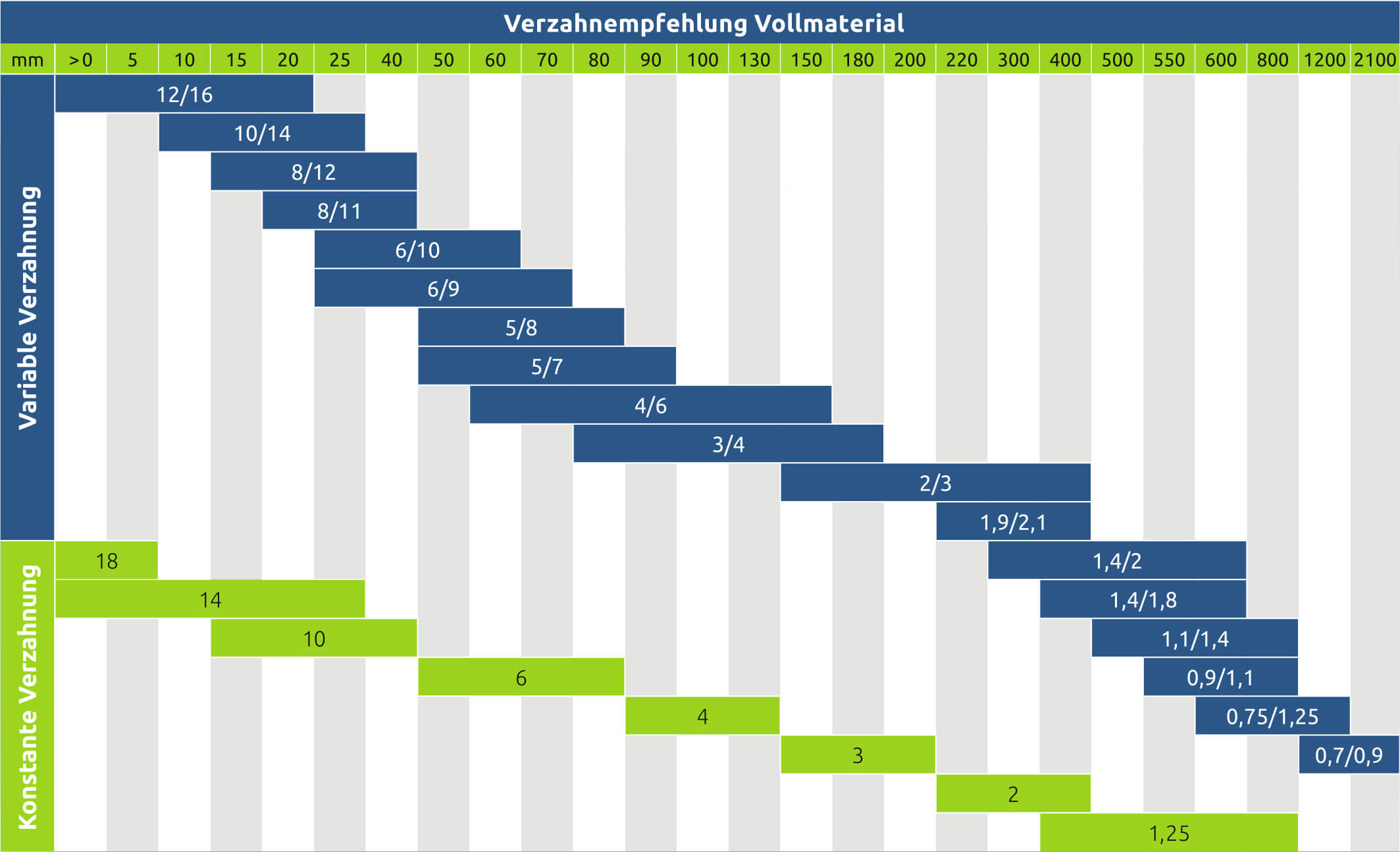Auswahl der richtigen Zahnteilung bei Vollmaterial