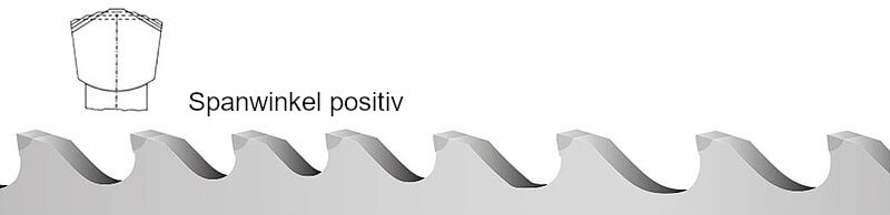 - Sägebänder im Zahnteilungsbereich von 4-18 ZpZ erzielen mit der Gruppenschränkung eine verbesserte Oberflächengüte des gesägten Schnittmaterials.